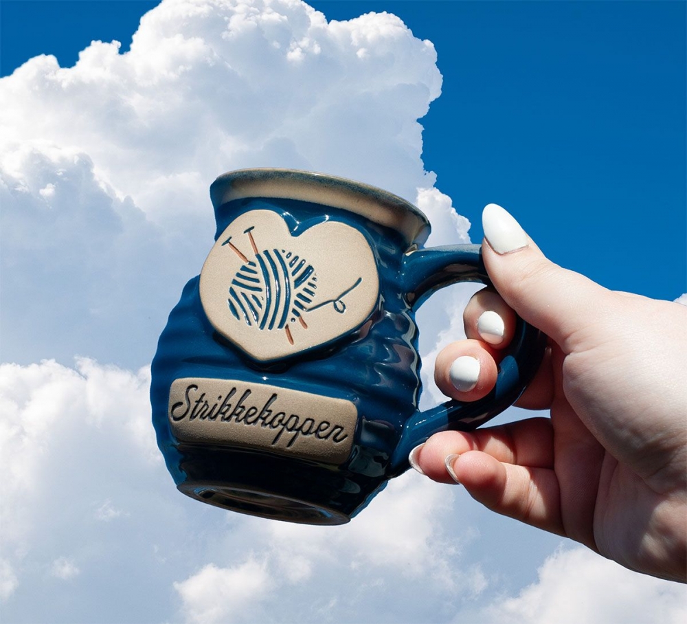 Den ultimate strikkekoppen i havblå for den som elsker strikking og håndarbeid! Fyll koppen med din favorittdrikk og sett deg til rette med prosjektet ditt.