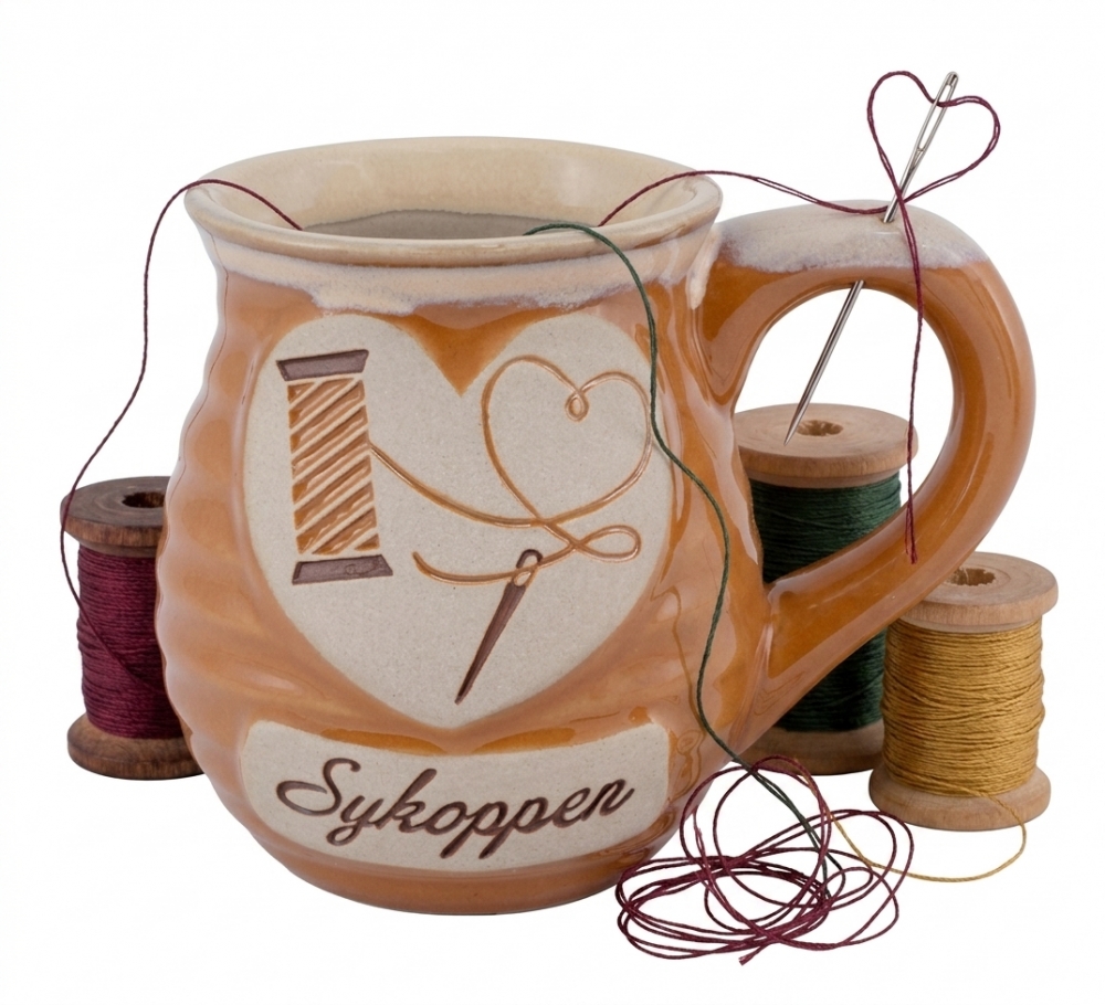 Den ultimate sykoppen i okergul for den som elsker sying og håndarbeid! Fyll koppen med din favorittdrikk og sett deg til rette med prosjektet ditt.