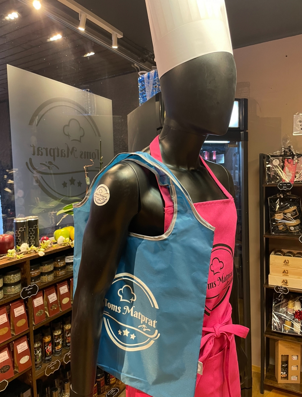 Miljøvennlig forkle av melert, resirkulert bomull (160 g/m²).