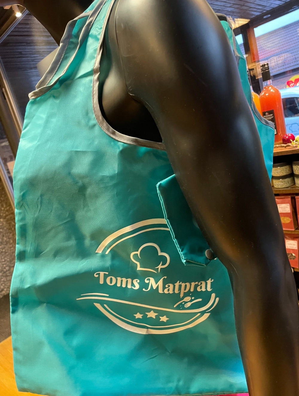 Den kommer med en egen taske og festeklips slik at mottakeren alltid kan ha den med. Handlenettet er laget av resirkulert plast som bidrar til å redusere karbonutslipp og til at plasten ikke havner på søppeldynga. Mål: 42•39