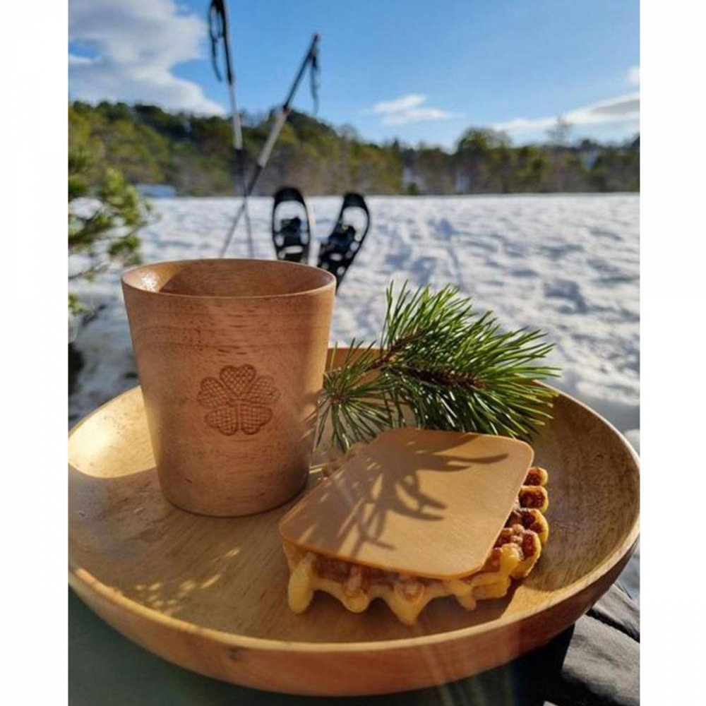 Praktisk turtallerken som passer perfekt til turen eller servering hjemme eller på hytta. Håndlaget trefat, laget av miljøvennlig tremateriale. Design: ut på tur aldri sur | Fjell Diameter: 18 cm