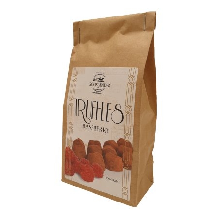Vegetabilsk fett (kokos, RSPO-sertifisert palmekjerne) i varierende proporsjoner, sukker, fettredusert kakaopulver, bringebærflak 0,006 % (bringebær 40 %, sukker 35 %, maisstivelse 25 %), smakstilsetning (vanillin, bringebær), mysepulver (melk), soyalecitin.