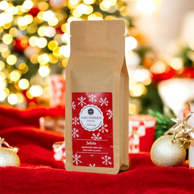 Vår julete vil garantert gi deg en følelse av at julen er rett rundt hjørnet. I denne teen er det benyttet tradisjonelle julekrydder. For å fullføre denne stemningen, har vi valgt å lage en egen juleetikett sammen med en god gammeldags brun papirpose.