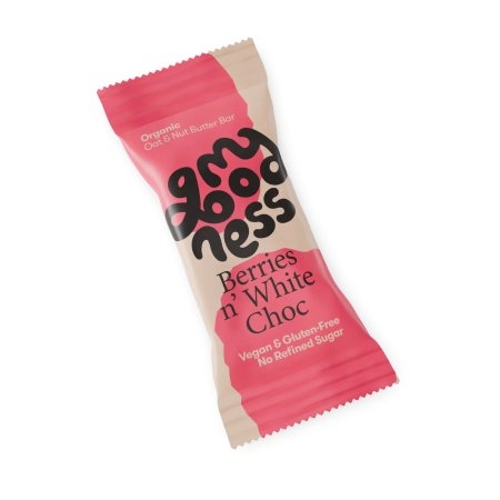 Mandelsmør* 24%, glutenfri havre* 23%, kokossirup*, erteproteincrisps* (erteproteinpulver*, rismel*), hvit sjokolade* 8% (kakaosmør* 40%, kokossukker*, glutenfri havre*, havsalt*. Kakaotørrstoff: 40% min.), kakaosmør* 6%, bringebær* 3%, tranebær m/ eplejuice* 3%, berberis* 3%, tranebær* 1,5%, rødbetepulver*, havsalt*, aroma*.