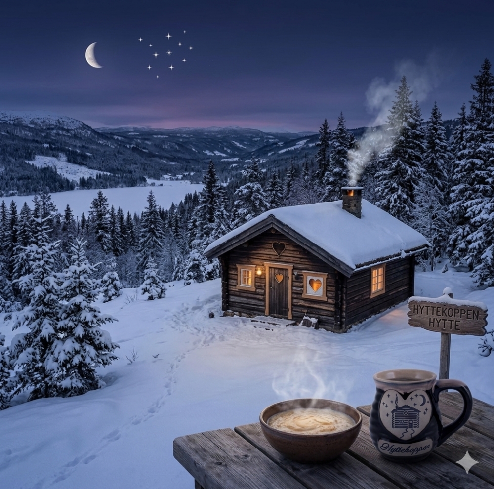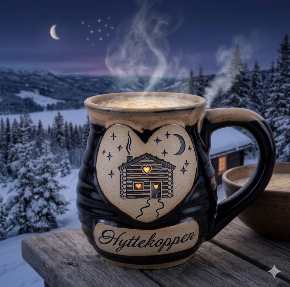 Den ultimate Hyttekoppen i sort for den som elsker hyttelivet! Fyll koppen med din favorittdrikk og nyt hyttetilværelsen.