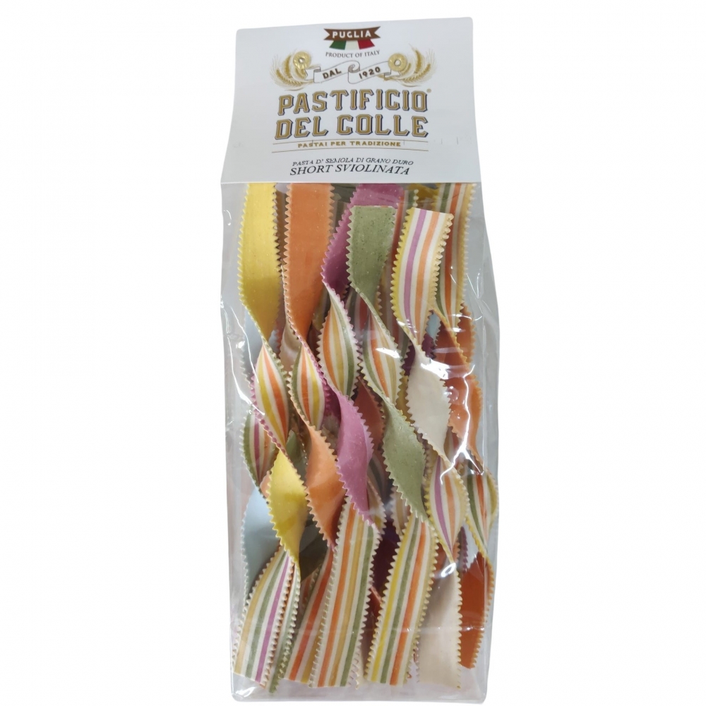 100 % ekte italiensk, fargerik pasta fra solfylte Puglia. Håndlaget. Smaker fantastisk og skiller seg ut fra vanlige pastaretter.